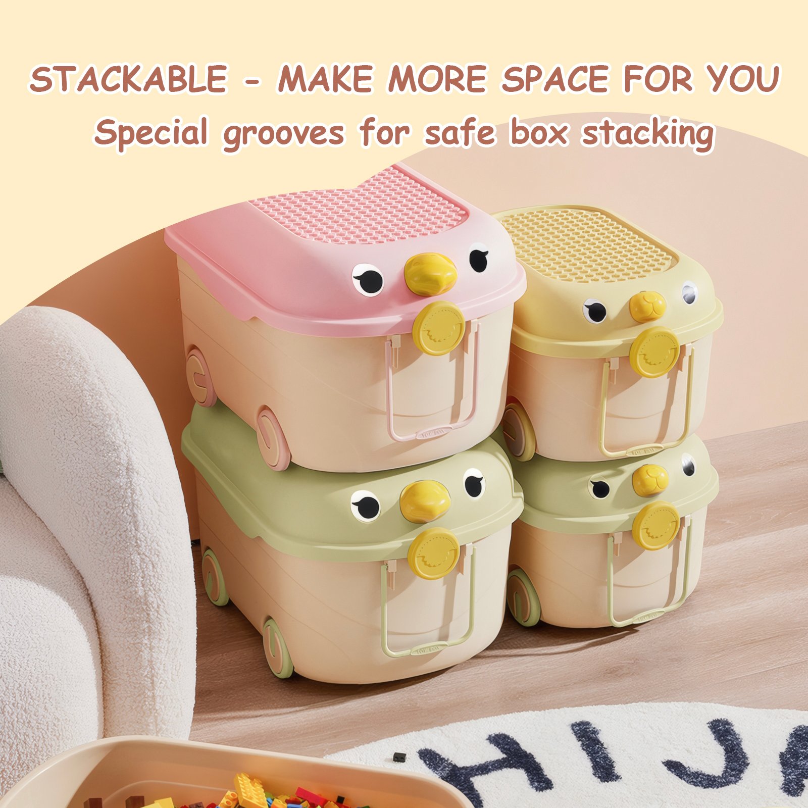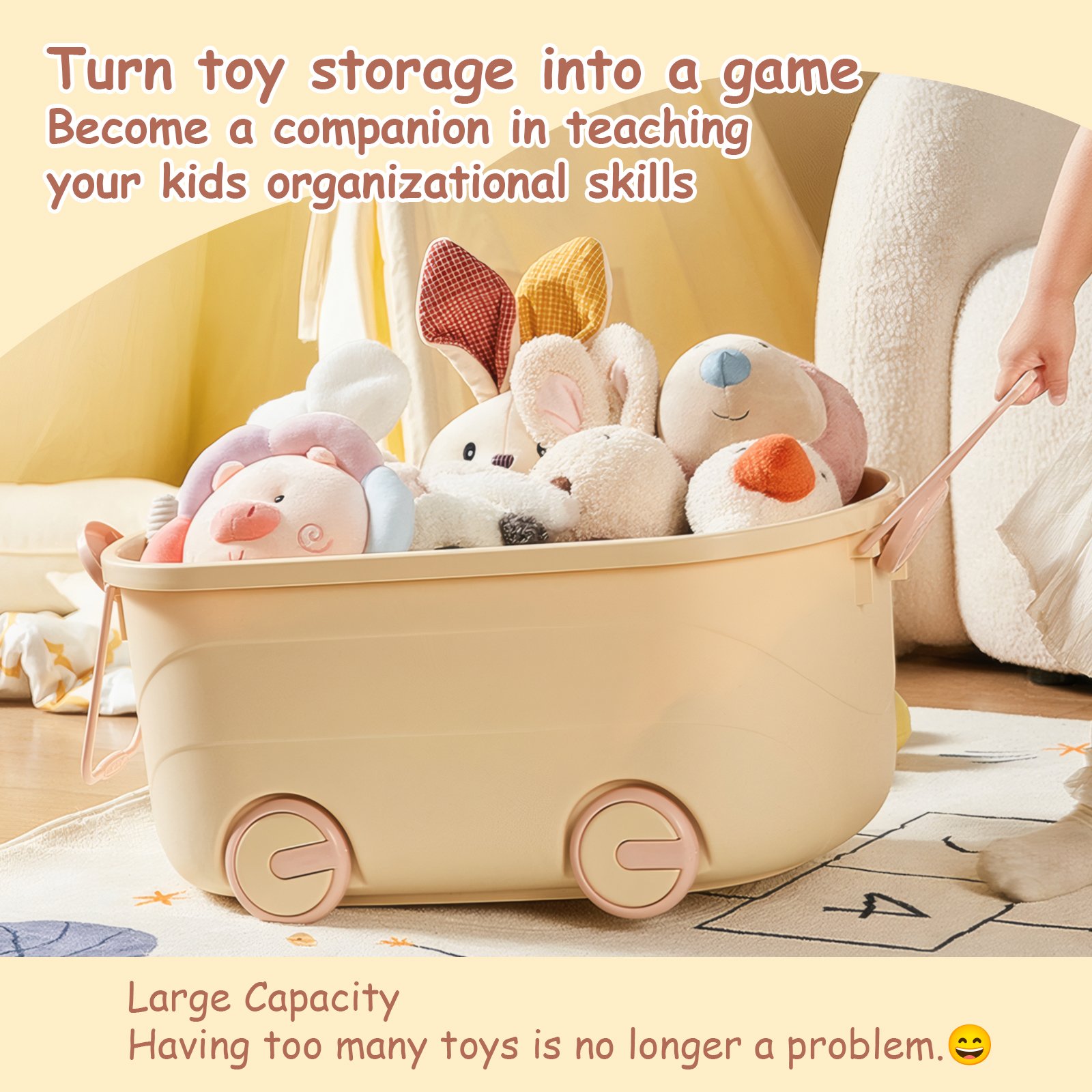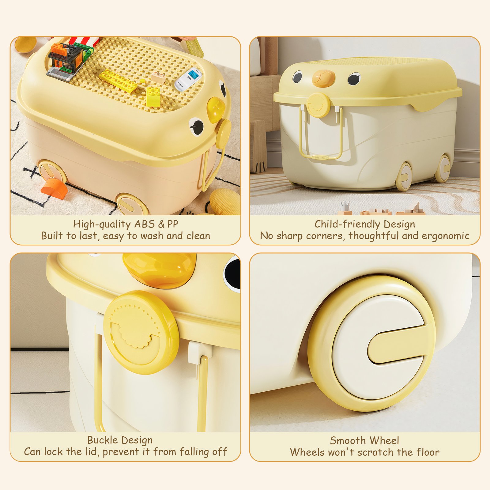 【✨Kid-Friendly Design】Made of high-quality materials with smooth edges and surfaces. Comes with a lockable lid to prevent it from sliding off and 4 smooth-rolling wheels to glide easily without scratching your floors.
