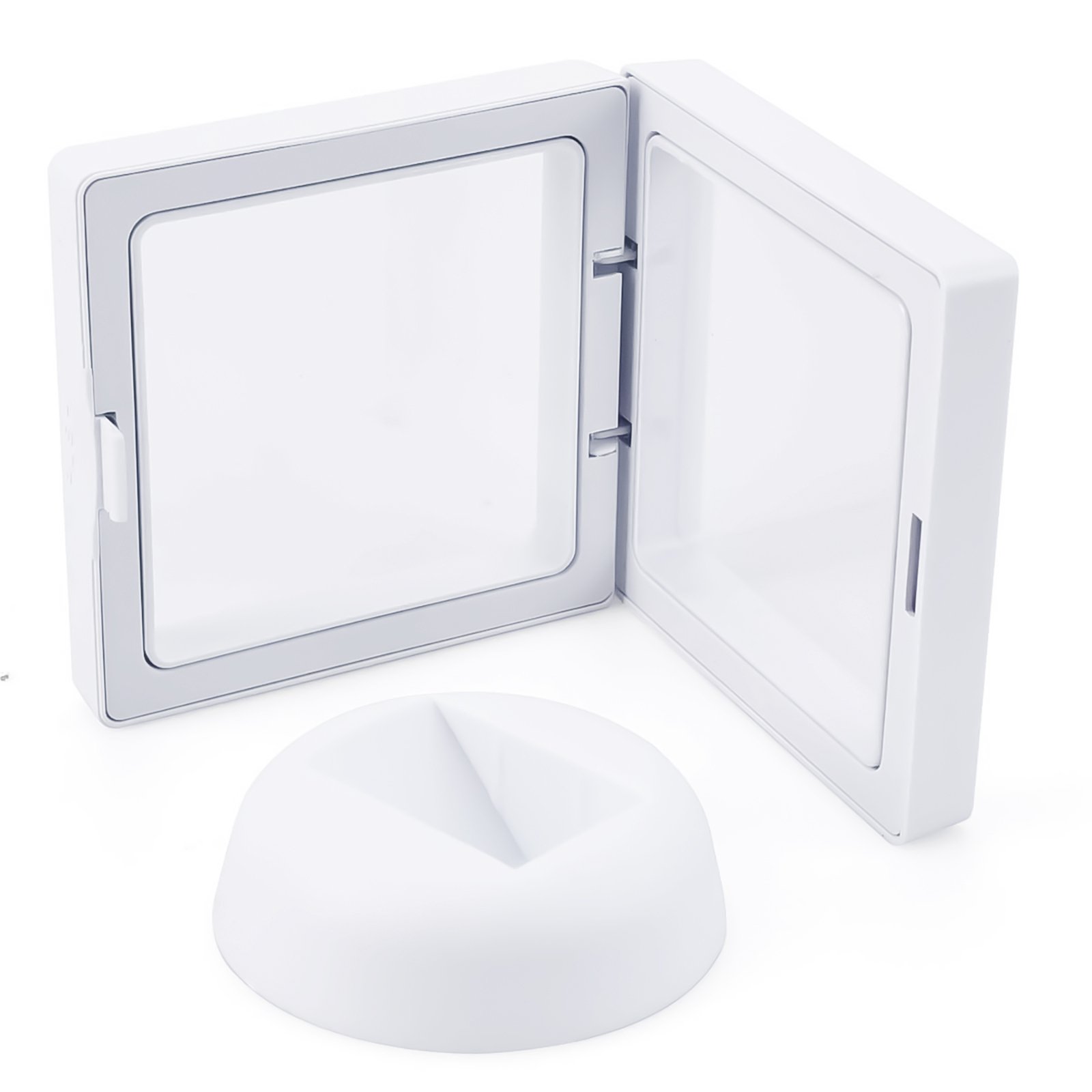 【 Size】Outer size: 9 x 9 x 2cm/3.5 x 3.5 x 0.8 inches; floating display screen size is 7.5 x 7.5cm/2.9 x 2.9 inches; mini size for small item display.
