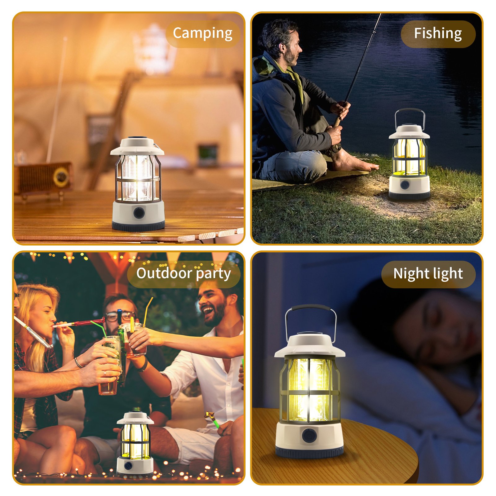 【 Multifunctional】Designed with a comfortable carry handle, this LED outdoor light can easily be hung on a tent, backpack, or branch. Additionally, this table lamp is versatile and can be used in various scenarios, such as fishing, hiking, and outdoor parties, etc.